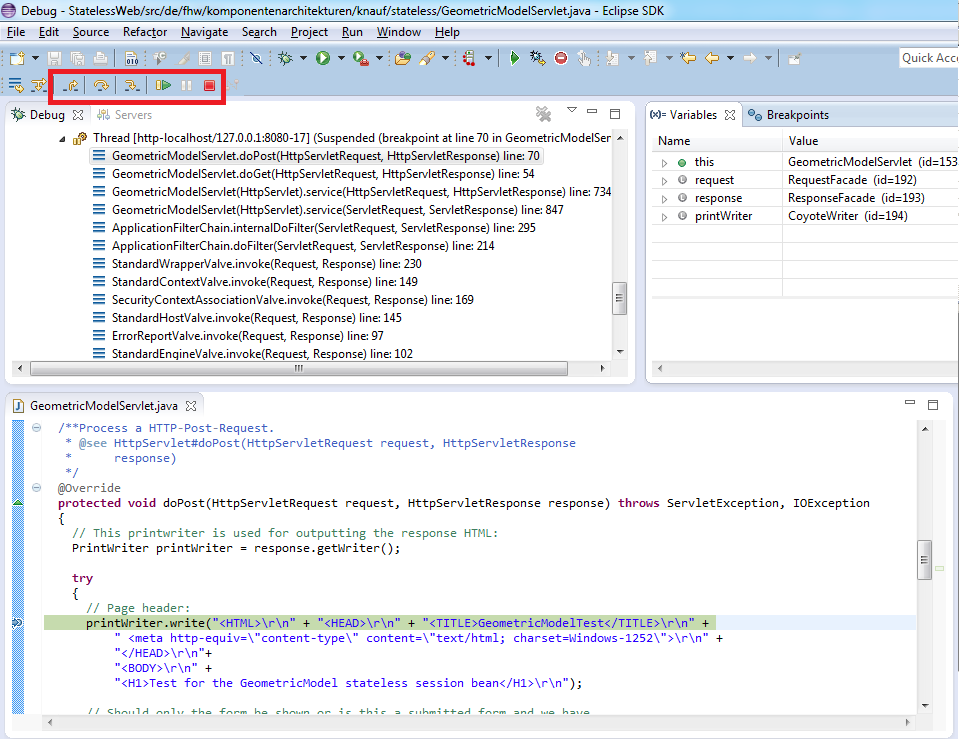 Wir setzen einen Breakpoint in der Methode doPost des GeometricModelServlet. Anschließend im Browser zu dieser URL navigieren: