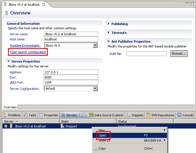 Für den JBoss-Server ist das Vorgehen so: