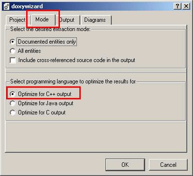 Auf der Karteikarte "Mode" sollten wir sicherstellen dass "Optimize for C++ output" aktiviert ist (Default).