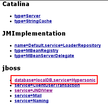 Servers die im JNDI unter dem Namen "java:/DefaultDS" abgelegt ist und auf die JBoss-interne Hypersonic-Datenbank zeigt.